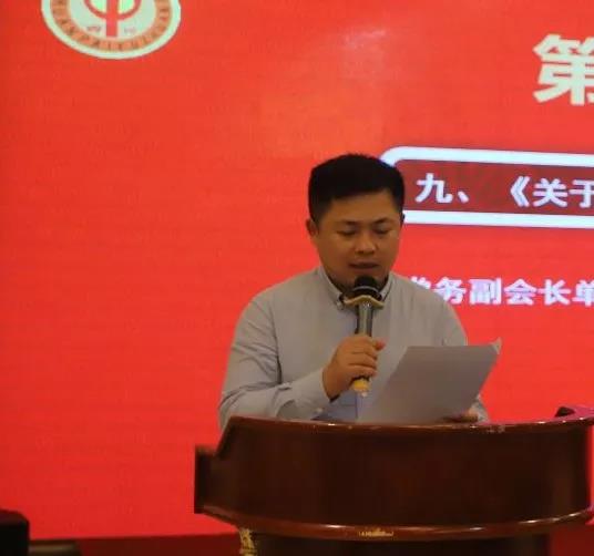 四川精上縫紉機有限公司董事長秘書江紀(jì)國代表新會員單位發(fā)言