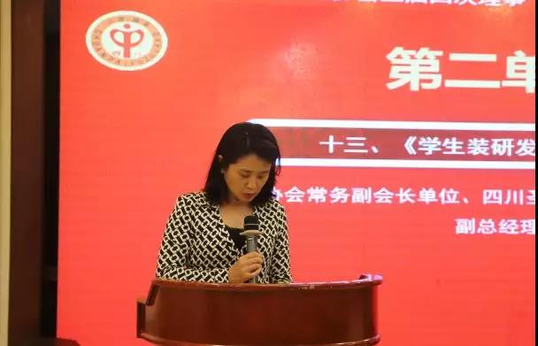 交流環(huán)節(jié),四川服裝(服飾)行業(yè)協(xié)會校服研發(fā)中心代表、四川圣山莫林實業(yè)集團有限公司副總經(jīng)理曹皎針對學(xué)生裝的研發(fā)設(shè)計以及市場發(fā)展趨勢進(jìn)行了主題演講。